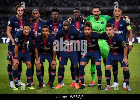 Players Of The Starting Line Up Of Paris Saint Germain Pose For Photos Before Competing Against Sydney Fc During Their Match Of The International Supe Stock Photo Alamy